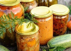 Потребуется: 3 кг кабачков, 1,6 кг помидоров, 2 головки чеснока, 1 стакан сахара, 1 стакан 6%-го столового уксуса, 1 стакан растительного масла, 2 ст. ложки соли.